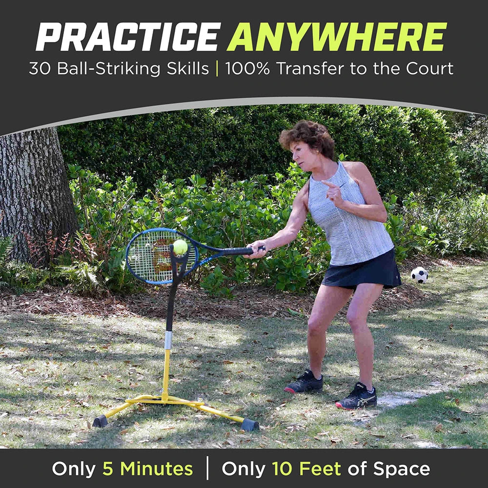 Designed and endorsed by Billie Jean King, the Eye Coach® is the only revolutionary device that retrains the brain to consistently hit the Sweet Spot. The Eye Coach simulates an actual game with 17 different shots, including top spin and underspin. The Eye Coach is also a portable and affordable an alternative to the traditional ball machine as it can be used at home with no court required. The Eye Coach Junior model is design for players shorter than 4 foot, 2 inches. The size variation between Pro and Junior allows players to make contact with the ball just below the shoulders.
