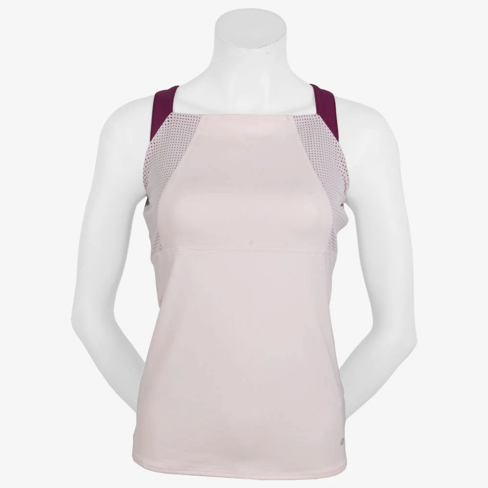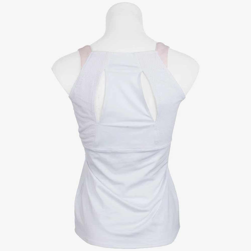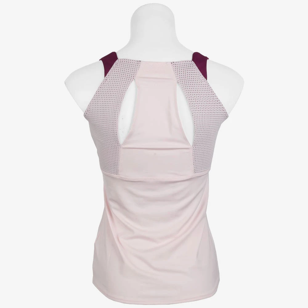 Bolle’s “A Cut Above” Collection pairs deep berry tones with delicate pinks and whites for a flattering, feminine palette that’s ready for your next foray onto the tennis court. The Bolle A Cut Above High Neck Tank is made with a flexible, moisture-wicking performance material that promotes a cool and comfortable playing environment. Pair this cute tank with a matching Bolle tennis skirt or skort for a look that will turn heads.
