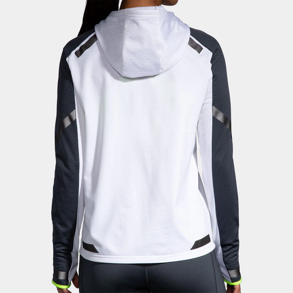 Stay safe and warm after dark in the Brooks Run Visible Thermal Hoodie! This long-sleeve first is perfect for late-night and early-morning runs, with reflective accents to help others recognize your movement.