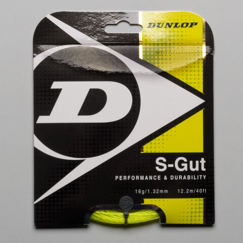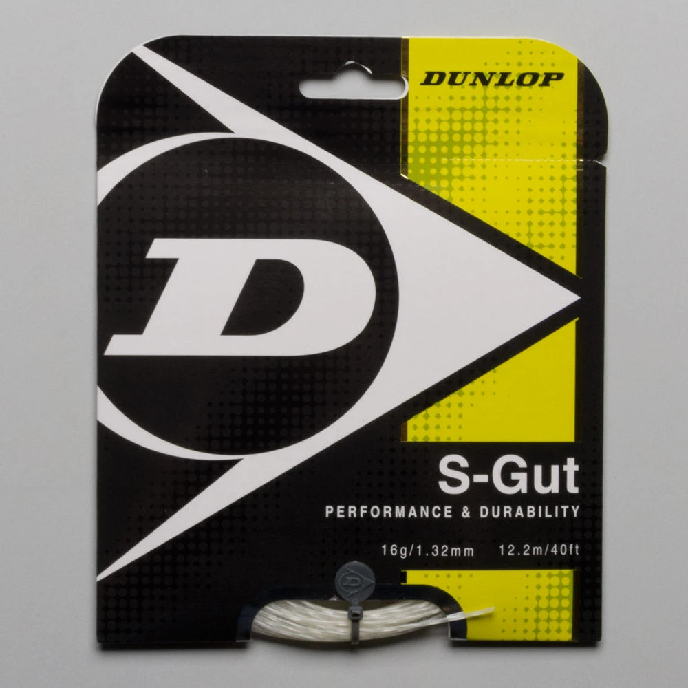 Dunlop S-Gut 16 tennis string is an excellent value multi-filament string delivering all around playability and durability. Highly elastic synthetic fibers give this string its power with a special PU outer coating for added durability.