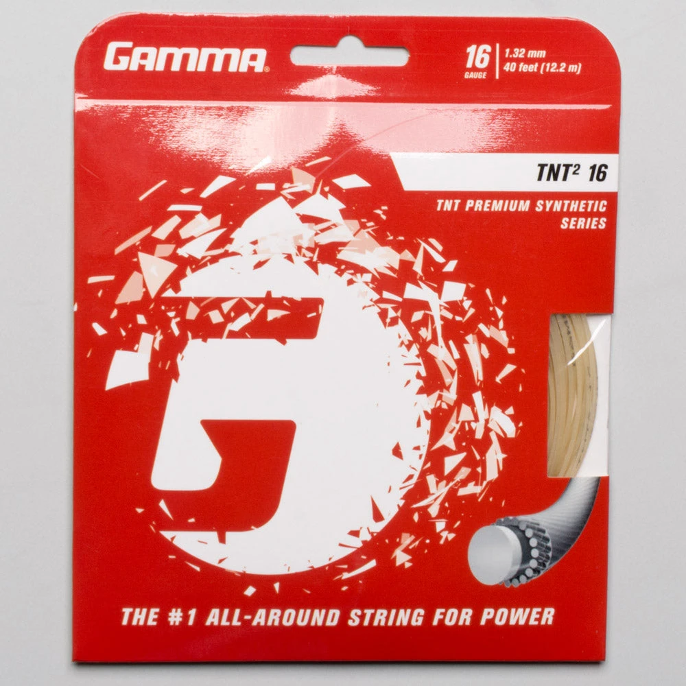 Gamma TNT2 16 tennis string provides even more power and control with less shock and a more lively feel. The processing of this string enhances playability, durability and control for all playing styles.