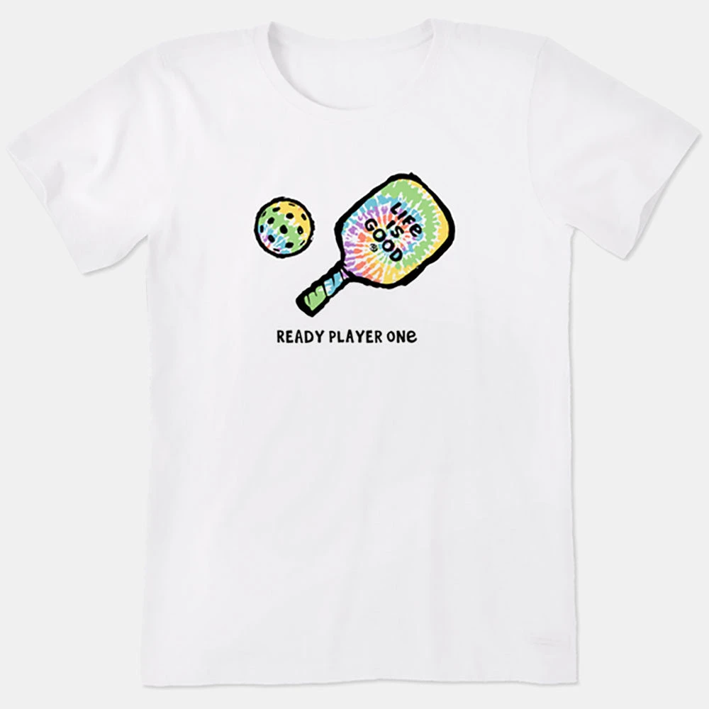Enjoy laid-back style with the Life Is Good Ready Player One Pickleball Crusher-Lite Tee. Soft and cozy, this lightweight layer is the perfect option on and off the court.