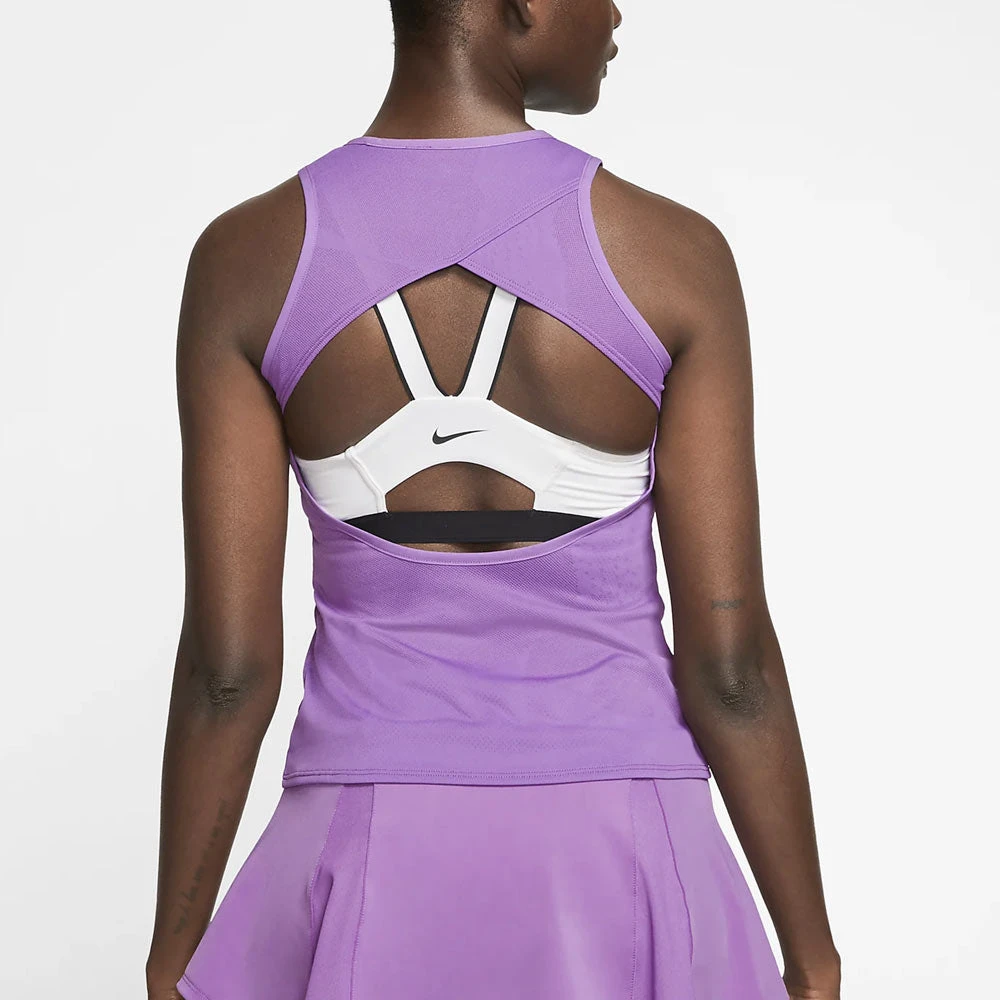 Stay cool when your match heats up in the Nike Court Spring Tank 2020. This comfortable tank is made with stretchy knit fabric that breathes and moves with you across the court. The breathable, open back design improves ventilation in high-heat areas and lets you show off a brightly colored bra for added style.