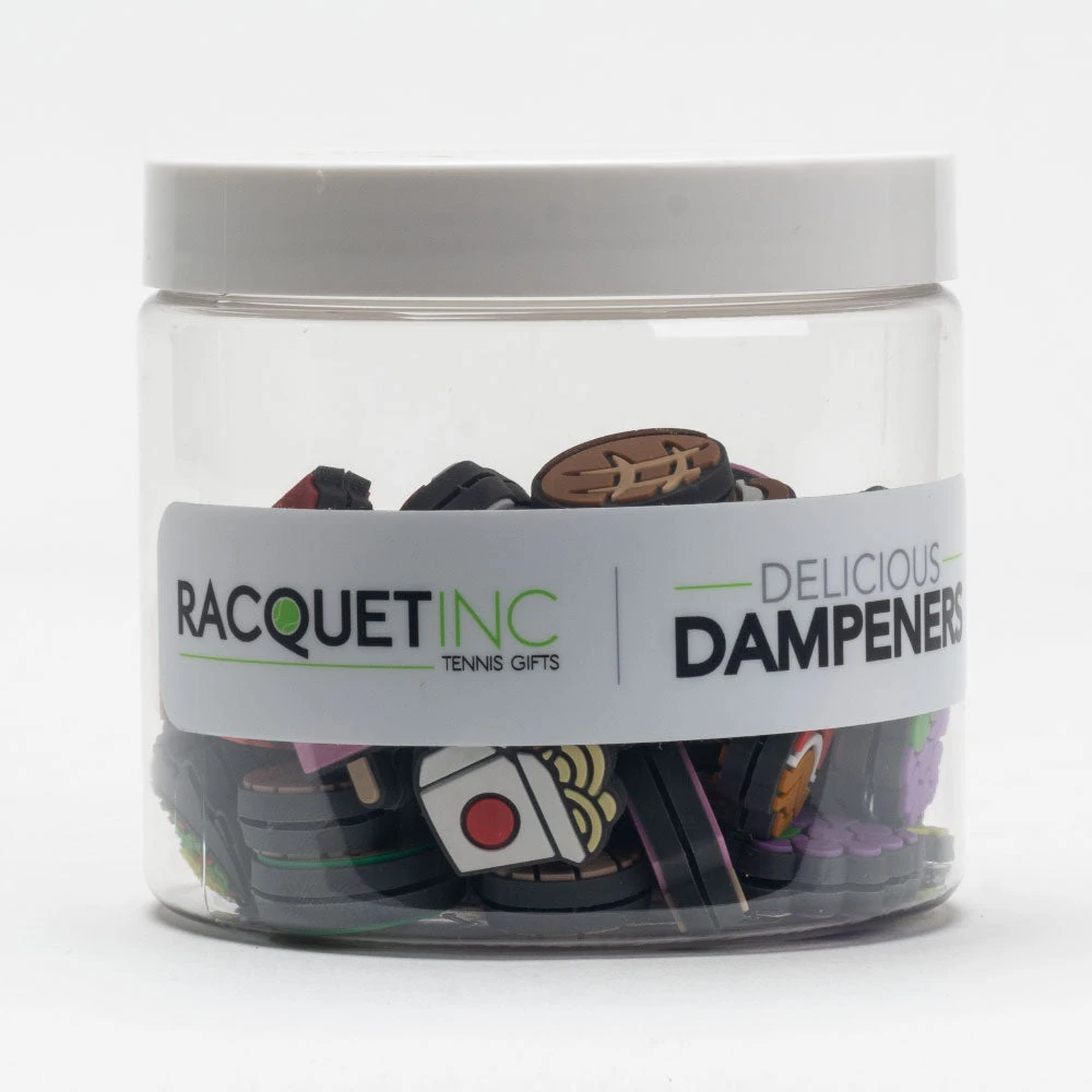 Looking for a fun way to add style and comfort to your swing? Try the Racquet Inc Delicious Dampeners Jar of 60! Available in many flavors, these cute dampeners decrease string movement to help you focus on enjoying the match.