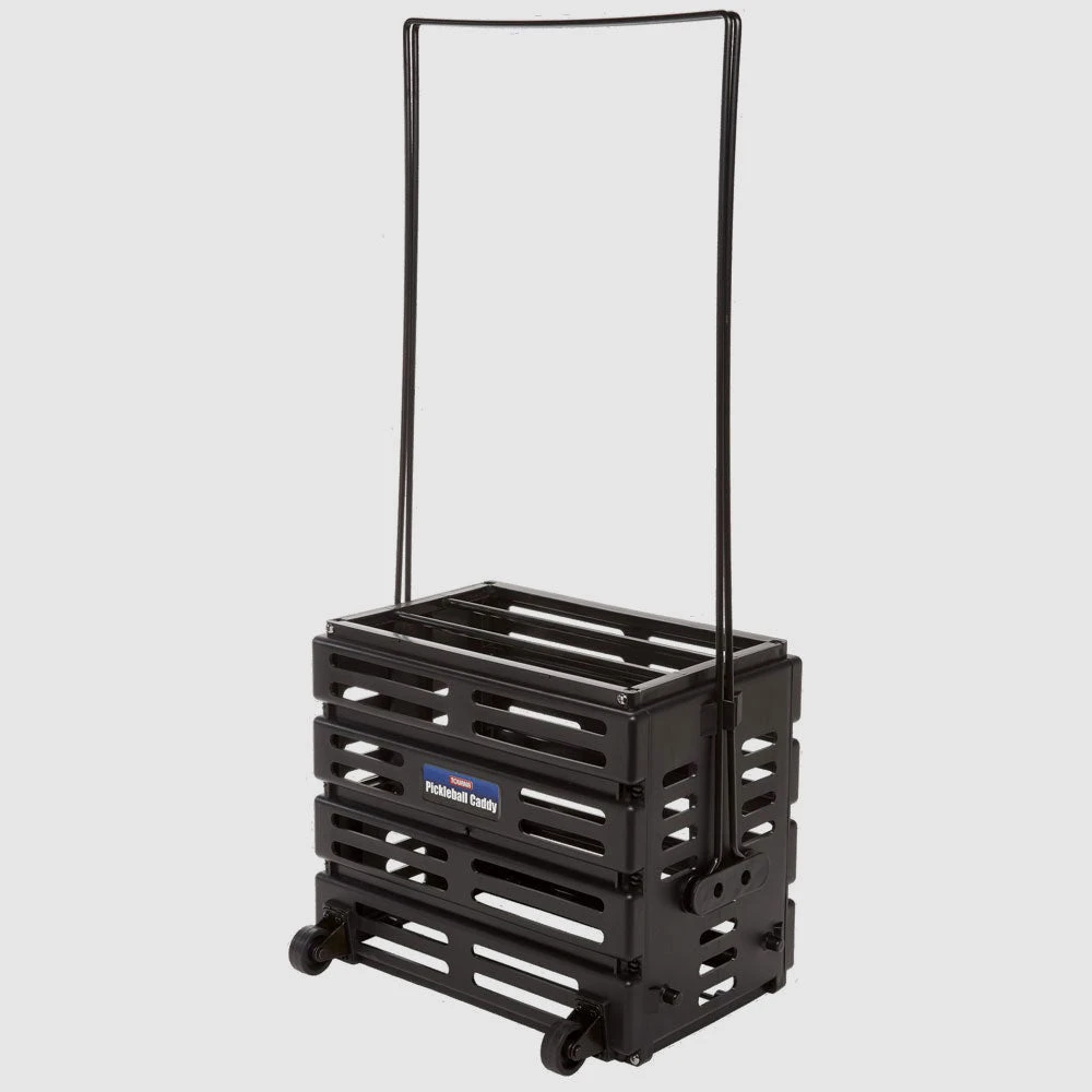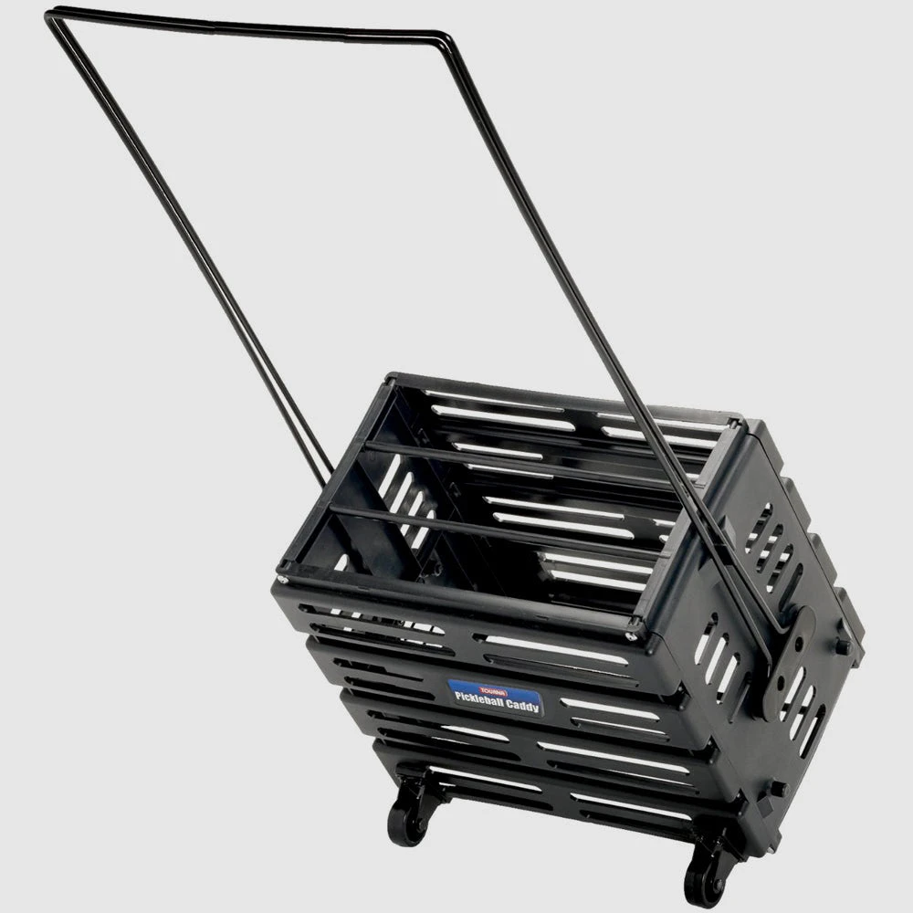 The Tourna Pickleball Ballport Deluxe with Wheels is built to hold more than 46 pickleballs. Its constructed with tough polypropylene that is lightweight and wont rust. Flip up the handles to pick up balls and flip them down to feed balls.