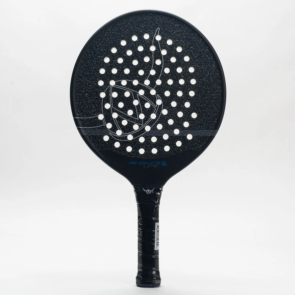 Blaze the court with the Viking Re-Ignite Lite! Lighter than the pro but heavier than the Prodigy, this platform tennis paddle features a Mid core density to allow more control. The Carbon Fiber Stability System offers the optimal blend of power and maneuverability, providing a whippy feel to enhance paddle speed. The grit surface texture provides comfort without sacrificing durability.