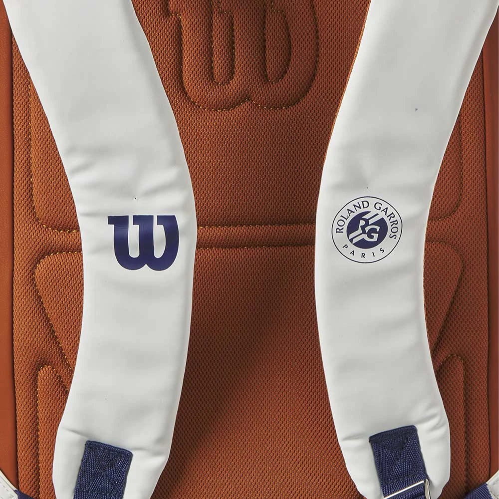 The Wilson Roland Garros Super Tour Backpack is inspired by the colors, design elegance and traditions of the biggest clay court tournament in the world. It includes a partial racquet compartment, a padded laptop sleeve and a ventilated pocket for sweaty clothing. Stash a water bottle in the thermo-regulated pocket on the side, and it will stay cool through match point.