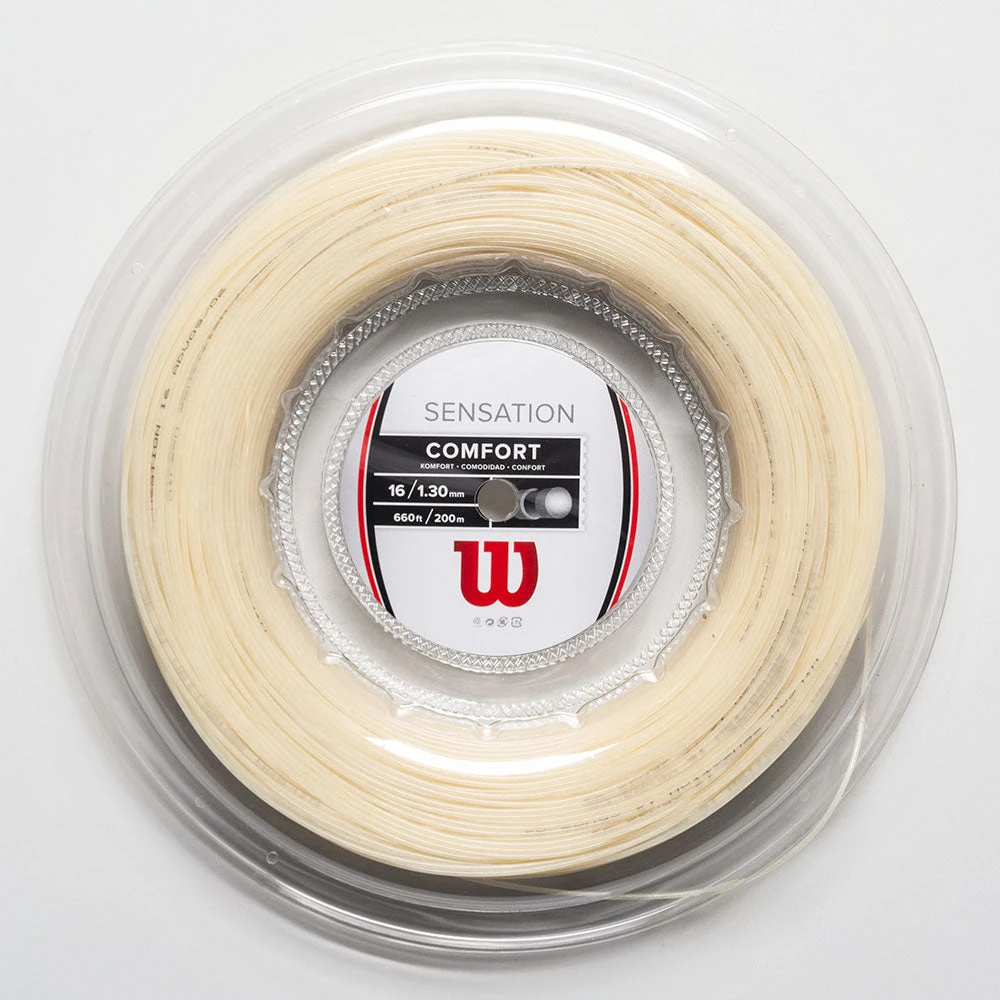 Wilson Sensation 16 tennis string features dual wrap Xycro Micro Fibers with a nylon composite coating to reduce vibration as compared to traditional synthetic gut. Providing excellent feel with added control combined with all around comfort and playability, this is the original high performance multifilament string.